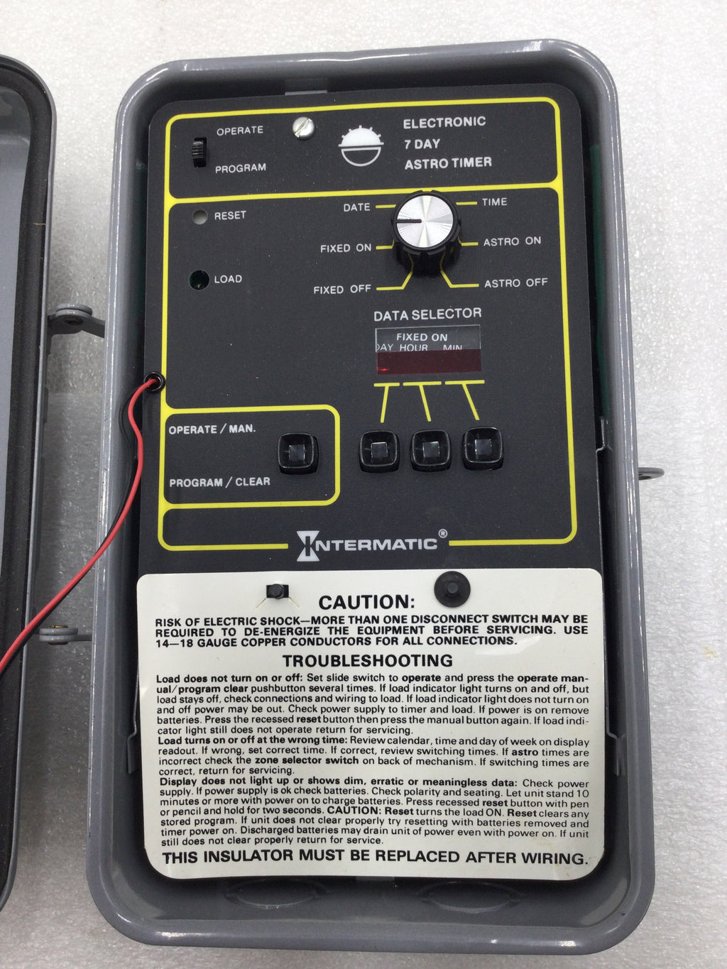 The Intermatic ET816CR is a reliable electronic DPDT 7-day astronomic time switch designed for precise control of lighting and electrical loads. Rated for 5 amps at 120 VAC, it adjusts automatically based on sunrise and sunset times, optimizing energy use without manual resets. Ideal for residential or commercial applications, it ensures efficient, hands-free scheduling for enhanced convenience and energy savings.