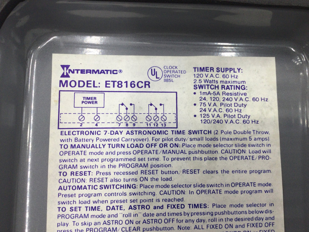 Intermatic ET816CR Electronic DPDT 7 Day Astronomic Time Switch 5 Amp 120 VAC