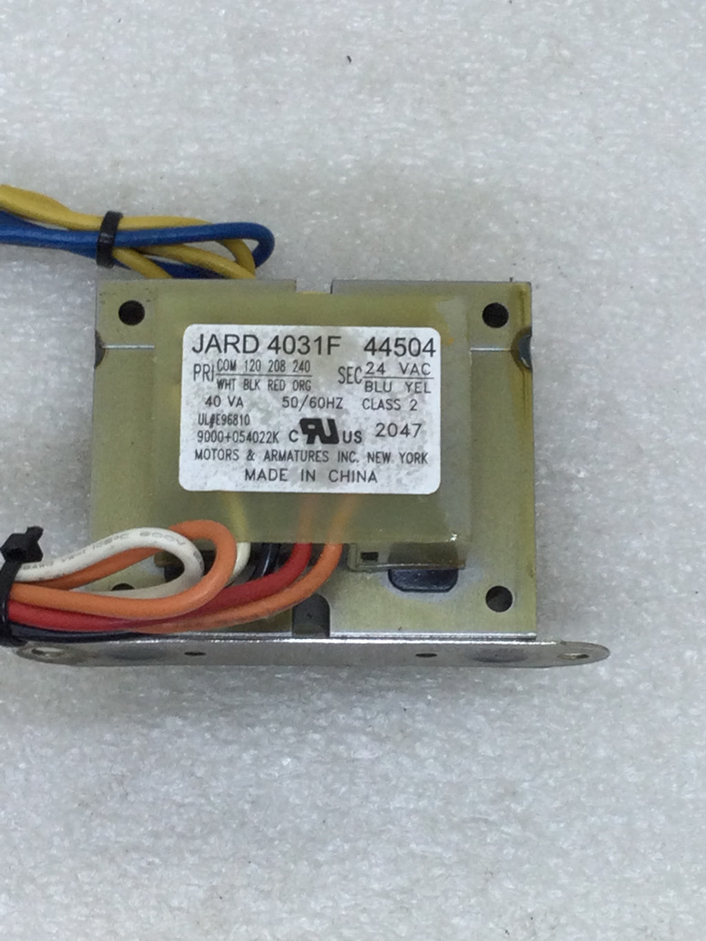 Jard 4031F Control Transformer 120/208/240 VAC Primary 24 VAC 40 VA Secondary (44504)