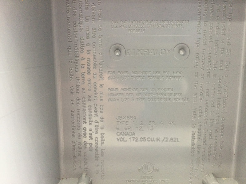 Kraloy JBX664 6X6X4 Junction Box PVC