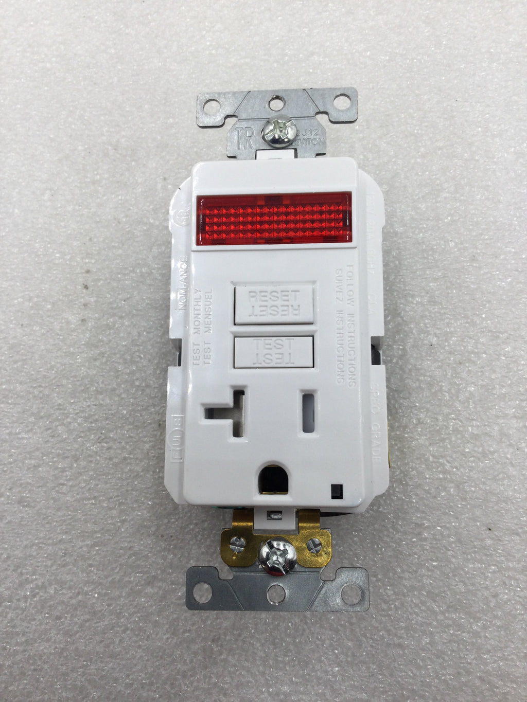 Leviton GFPL2-PLW 20 Amp 125 VAC Smart Lock Pro Self Test GFCI Outlet with Pilot Light