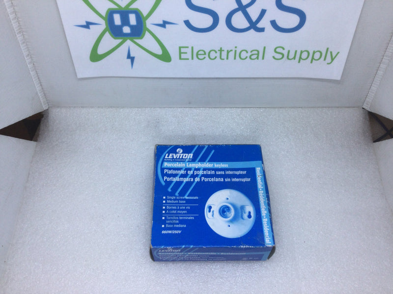 Leviton 9875 Porcelain 4 1/2" Porcelain Lampholder Keyless 660W/250V Max Medium Base