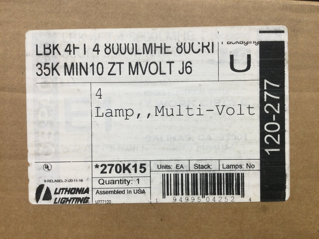 Lithonia Lighting LBK 4FT 4 8000LMHE 80CRI 35K MIN10 ZT MVOLT J6 Light Bar Kit