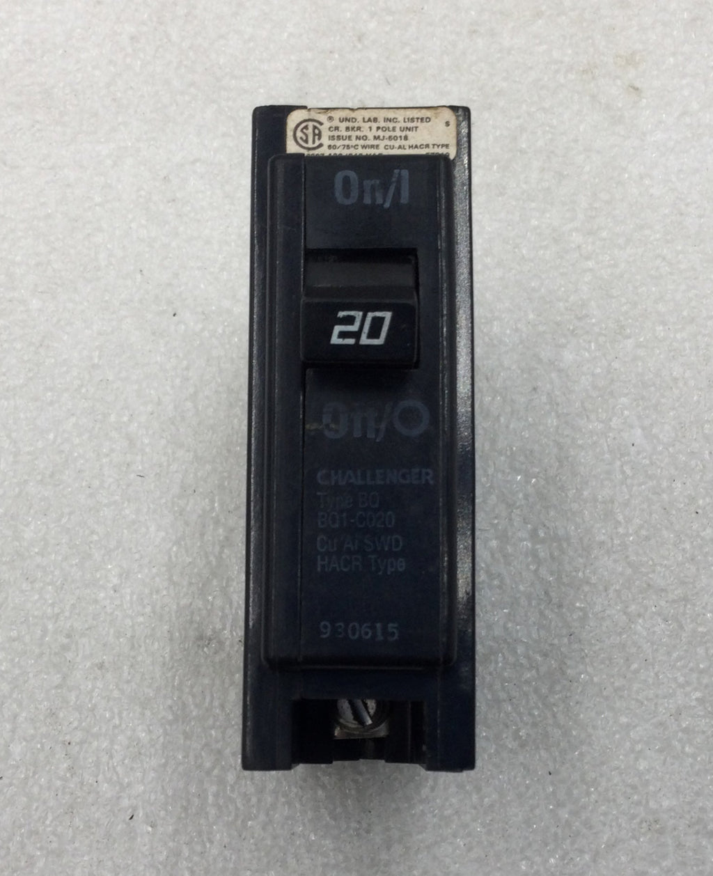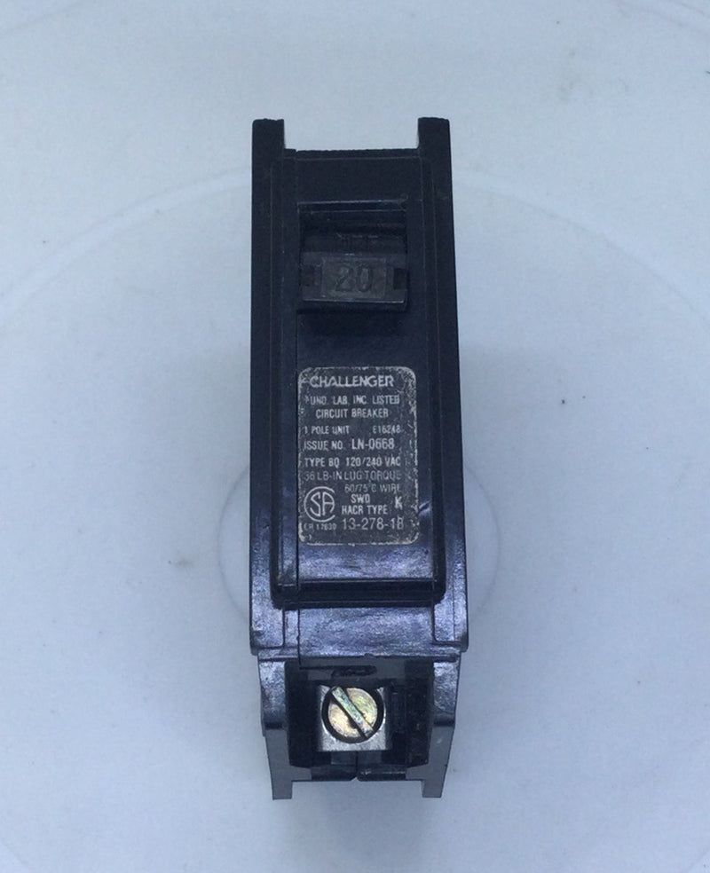 GTE/Challenger BQ1C020 20 Amp 1 Pole 120/240V Type BQ Bolt On Circuit Breaker