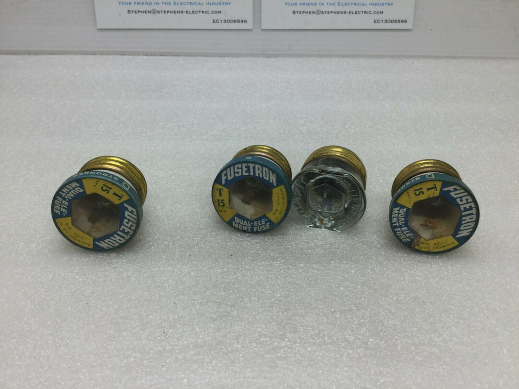 (Lot Of 4) T 15 F, 15 Amp Fusetron Dual-Element Fuses