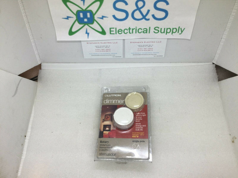Lutron D-600ph-Dk 600w, 120v Push Rotary Dimmer, White/Ivory Single Pole