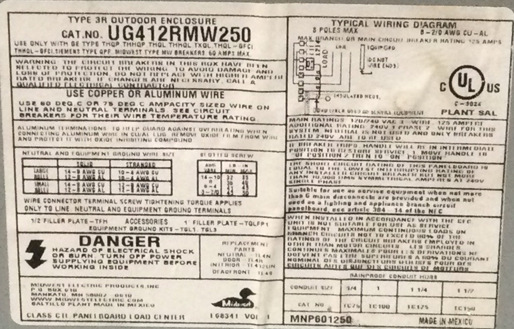 Midwest Electric UG412RMW250 50 Amp 2 Pole 7 Space 1PH 240V GFCI Disconnect