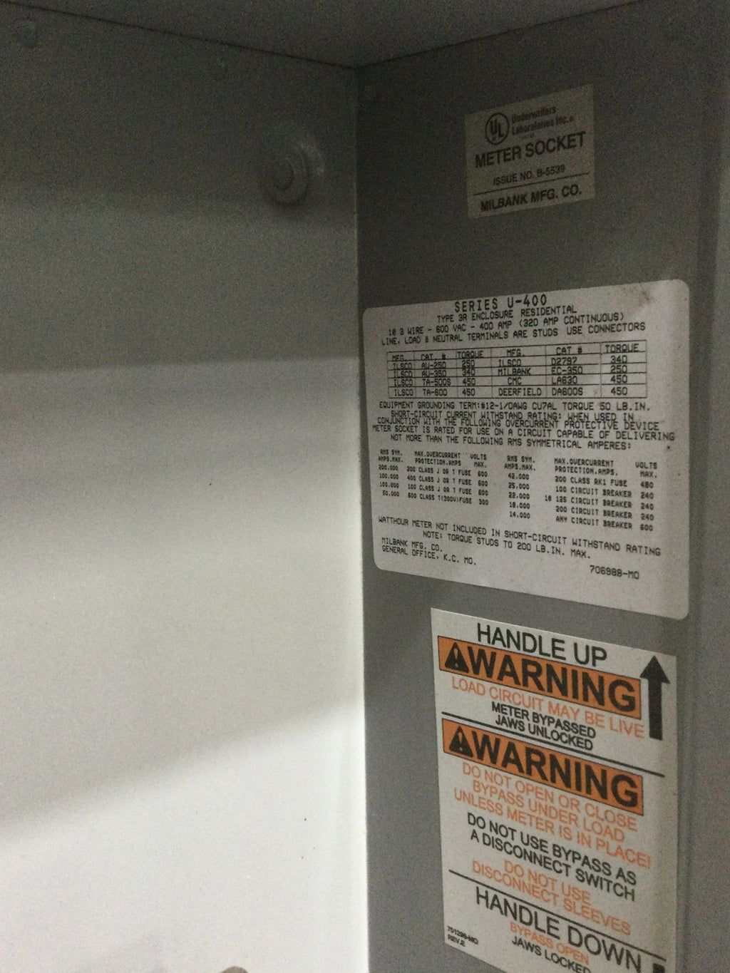 Milbank Series U-400 400 Amp 1 Phase 600V Meter Socket 34 1/2" x 17 3/4"