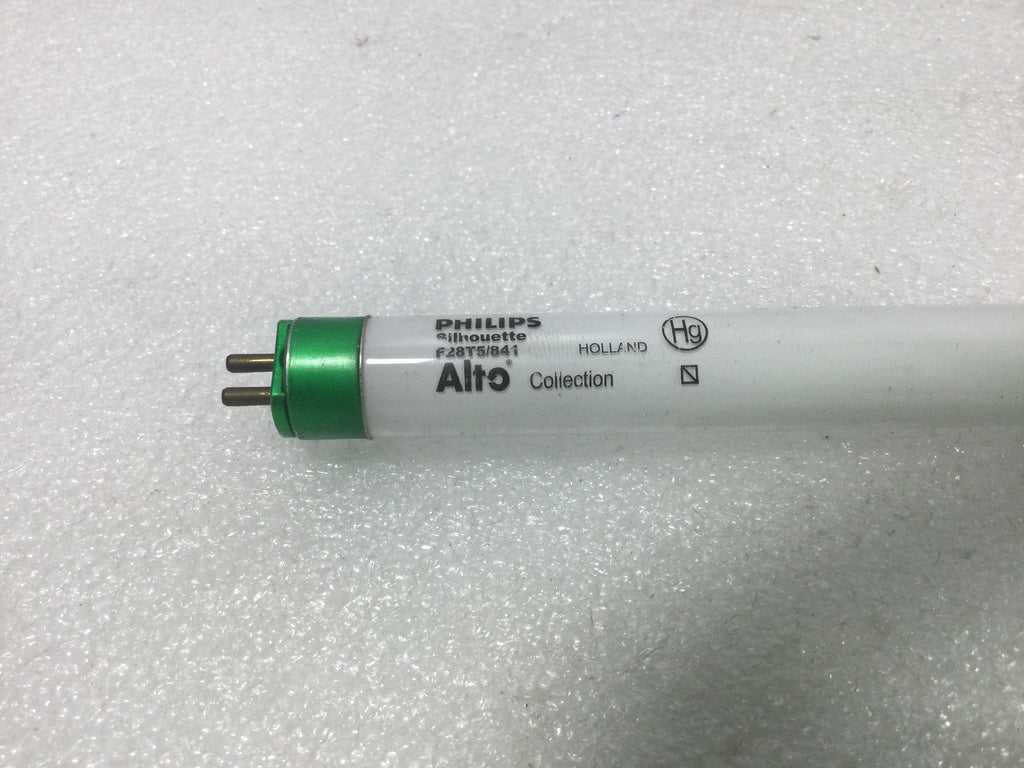 The Philips F28T5-841 fluorescent tube delivers 28 watts of efficient lighting with a luminous output of 2900 lumens and a color temperature of 4000K, providing bright, neutral white light ideal for professional and commercial environments. Its slim T5 design ensures compatibility with modern fixtures while optimizing energy use and light quality for enhanced visibility and productivity.
