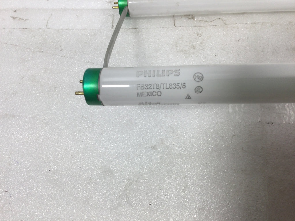 The Philips FB32T8/TL835/6 is a 32W U-bent fluorescent tube designed for efficient lighting with a color temperature of 3500K, providing a natural white light ideal for professional environments. Delivering 2800 lumens, it ensures bright, consistent illumination while its compact 22 5/8" by 7" dimensions allow easy installation in various fixtures. This tube offers reliable performance and energy efficiency, making it suitable for commercial and industrial applications requiring quality lighting solutions.