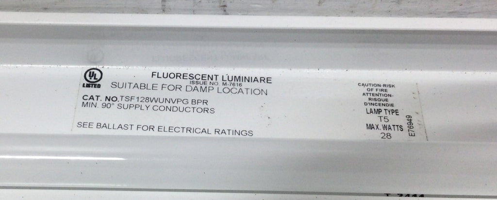 The Philips Lightolier TSF128WUNVPG BPR is a 46-inch T5 fluorescent light fixture designed for under-cabinet installation. Operating at 28 watts, it delivers efficient, consistent illumination ideal for task lighting in kitchens, workspaces, or display areas. Its slim profile ensures discreet placement while providing bright, energy-saving light to enhance visibility and reduce eye strain. Durable and reliable, this fixture is engineered for professional-grade performance and long-lasting use.