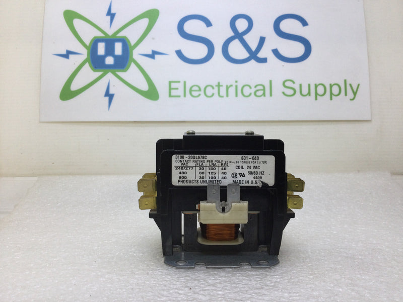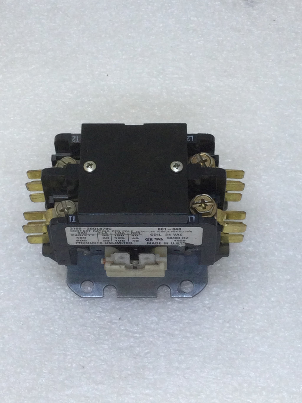Products Unlimited 3100-20QL678C 30 Amp Contactor 240-600 VAC with 24 VAC Coil