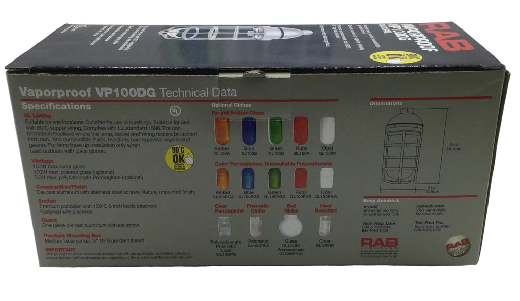 The RAB Lighting VP100DG delivers robust industrial lighting for demanding commercial and outdoor applications. This 150W fixture operates at 277V, making it ideal for standard commercial electrical systems. The diecast aluminum construction provides superior durability and corrosion resistance, while the integrated guard protects the lamp and lens from impact damage.