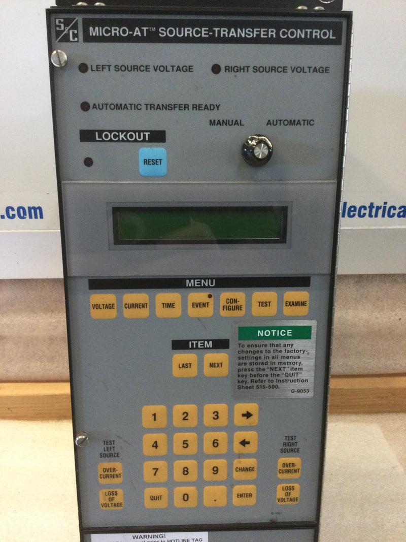 S&C Electric 39090-V1Y4Y5Y6Y8Y21-S101 120VAC Max Micro-AT Source-Transfer Control
