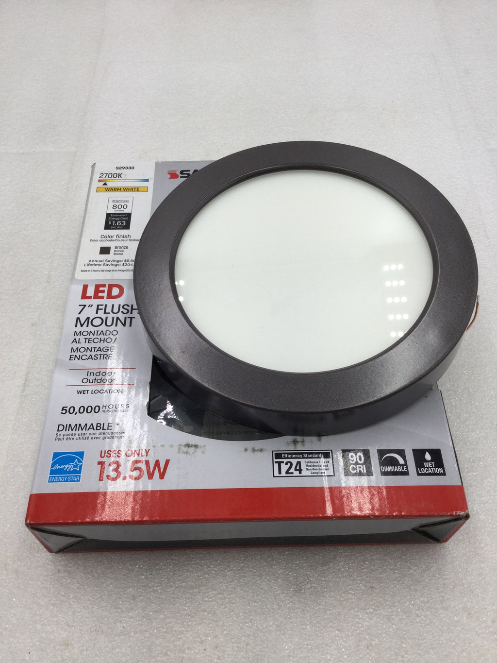 Upgrade your lighting with the Satco/Nuvo S29330 7" Flush Mount Dimmable LED Fixture. With a low wattage of only 13.5 watts, this fixture is energy efficient and produces a powerful 820 lumens of light. The dimmable feature allows for customizable lighting while the bronze finish adds a touch of elegance to any space.