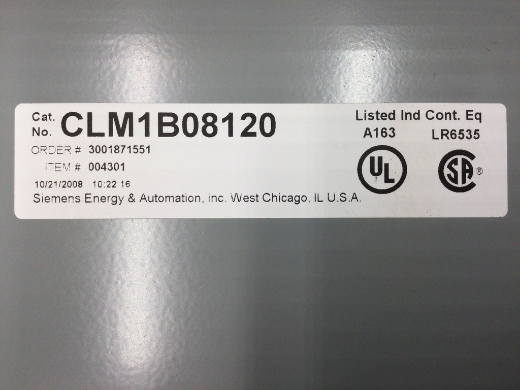 The Siemens CLM1B08120 is a non-combination type lighting contactor, expertly designed for indoor general use. It boasts a 20A contactor amp rating, 0 N.C. / 8 N.O. poles, and a 110 120V 50/60Hz coil, all enclosed in a NEMA type 1 enclosure for optimal performance.