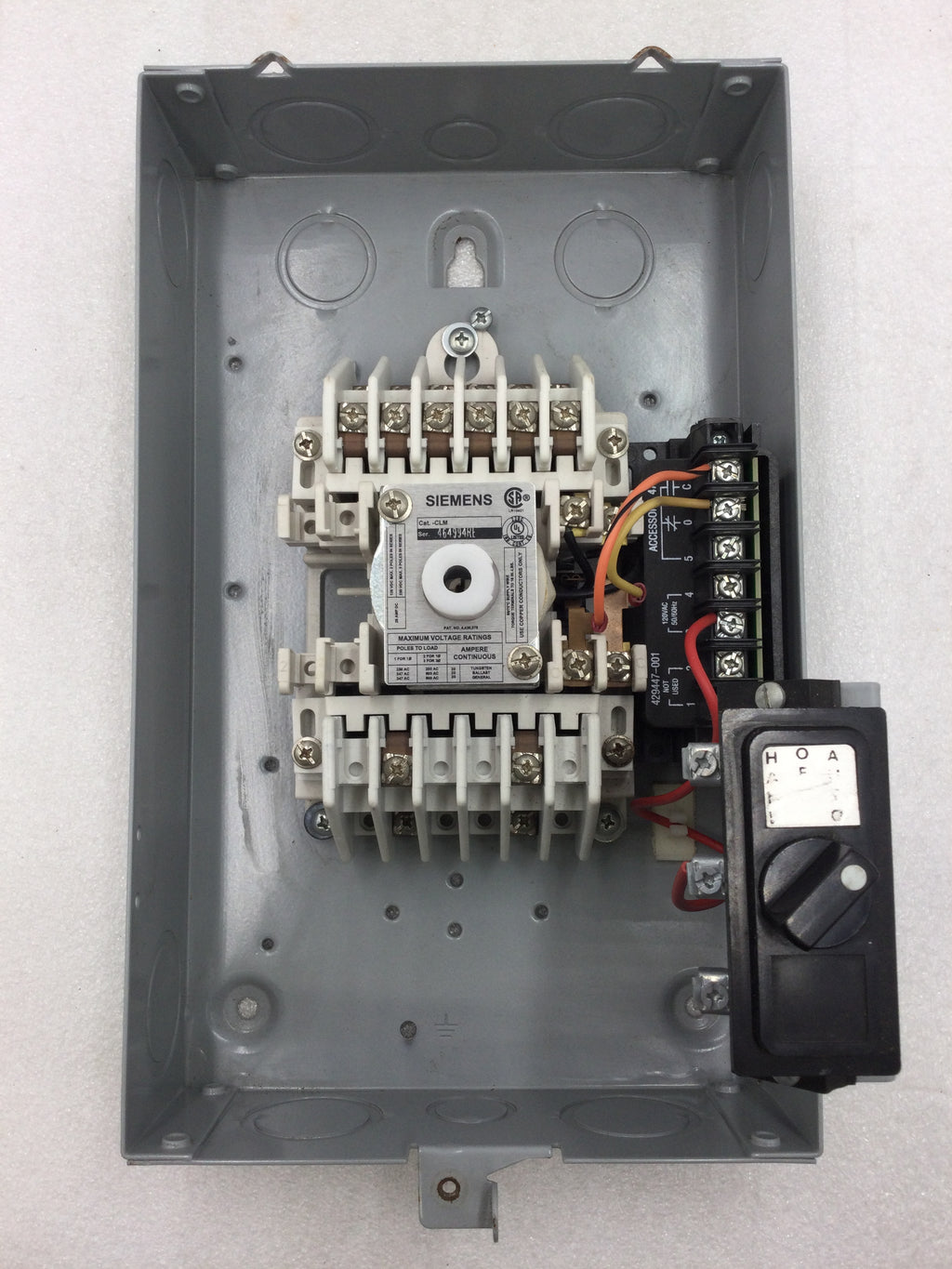 Siemens CLM1B08120 Mechanically Held Lighting Contactor with 49SBSB1 HAND-OFF-AUTO Selector switch and 429447-001 120V Lighting Control Module