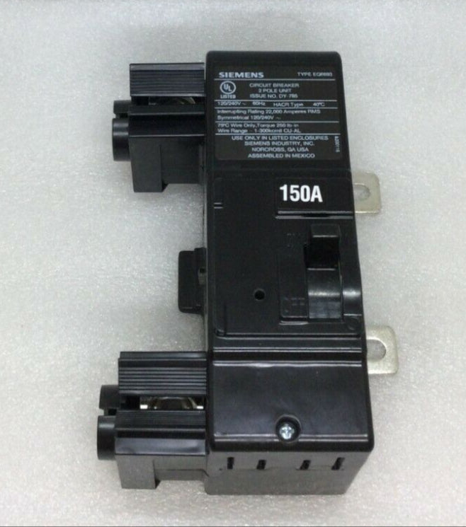 This Siemens MBK150A Type EQ8693 Circuit Breaker provides 150 Amp, 2 Pole protection for all of your electrical needs. It is designed to trip quickly and safely in the event of overloads or short circuits. A reliable and efficient option for all wiring projects.