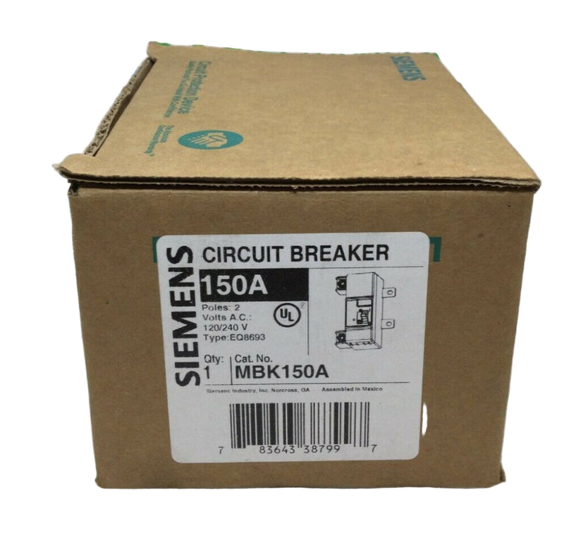 Siemens MBK150A 150 Amp 2 Pole 120/240V Type EQ8693 Circuit Breaker