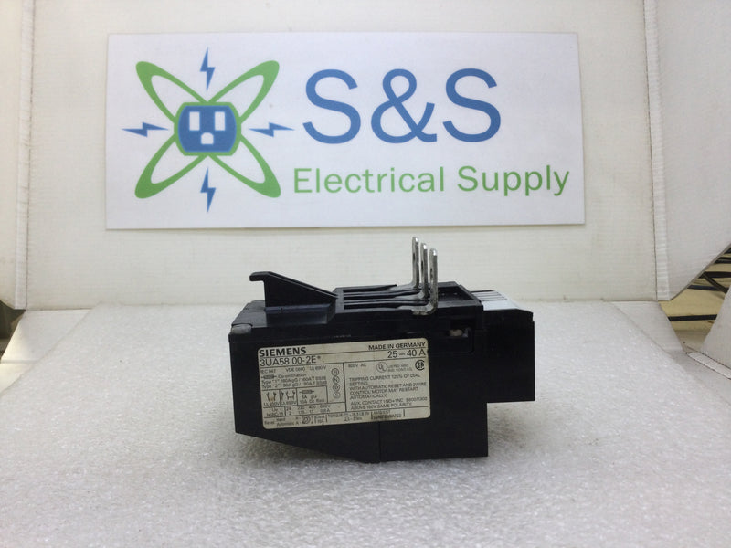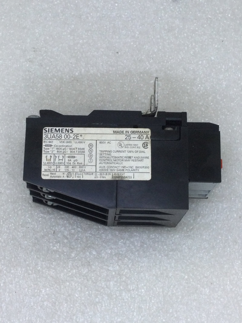 Siemens 3UA58 00-2E* 25-40 Amp 600 VAC 10kAIC Overload Relay with 1 NO and 1 NC Contacts