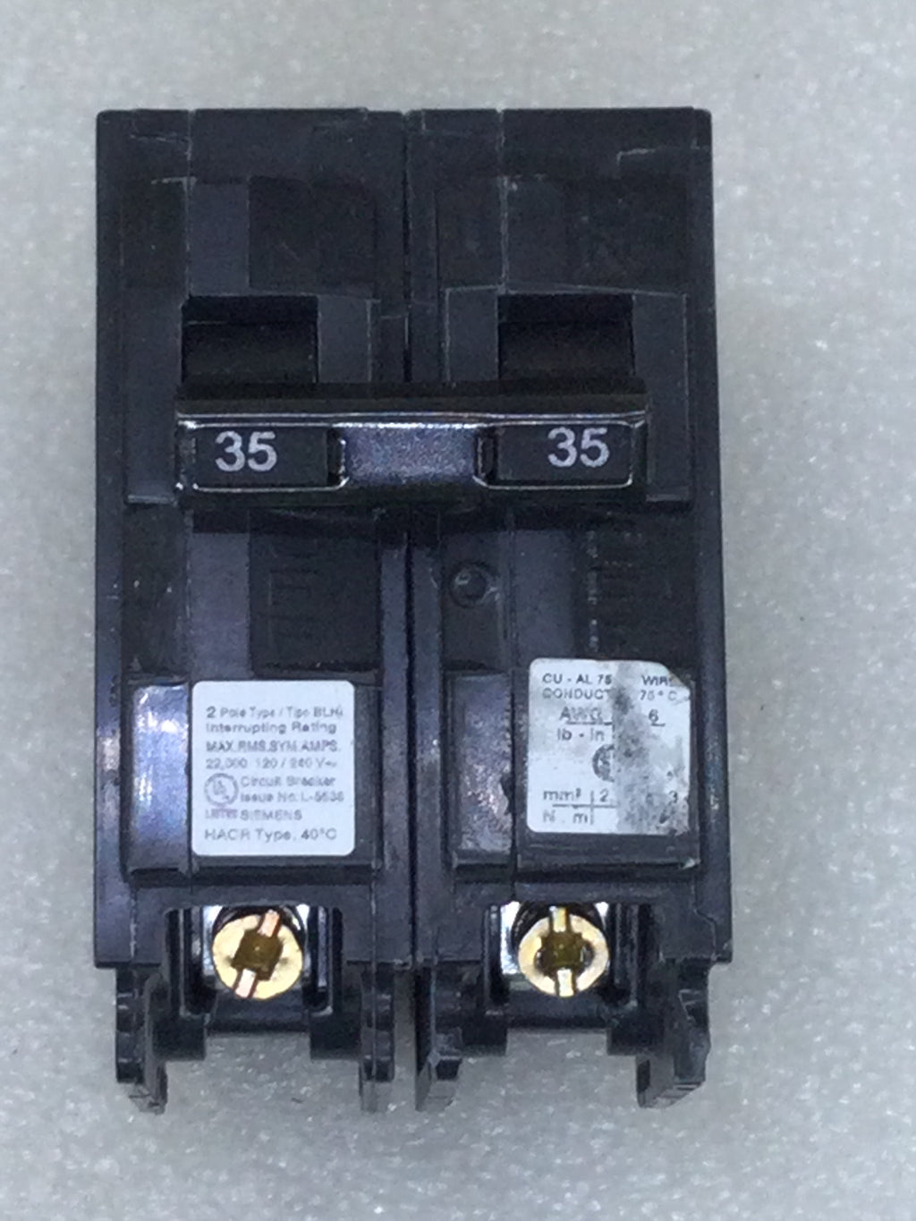 Siemens B235H BLH 2 Pole 35 Amp 240 VAC Bolt-On Circuit Breaker 22kA AIC Rating