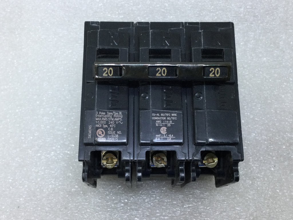Siemens B320 20 Amp 3 Pole 240V Circuit Breaker