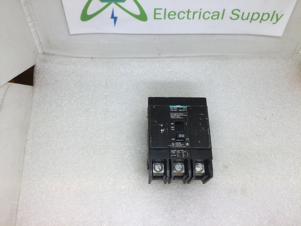 Siemens BQD380 3 Pole 80 Amp 480Y/270V Type BQD Bolt On Circuit Breaker