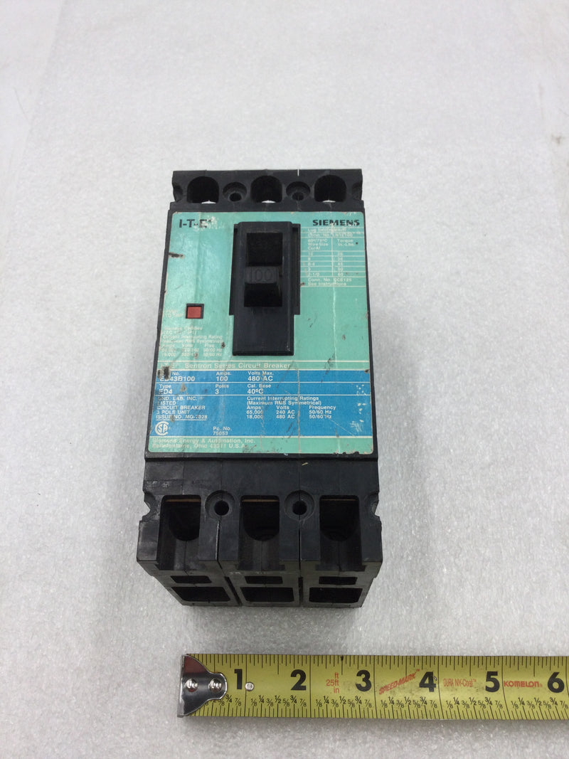 Siemens/ITE ED43B100 480 VAC 3 Pole 100 Amp Circuit Breaker with Shunt Trip