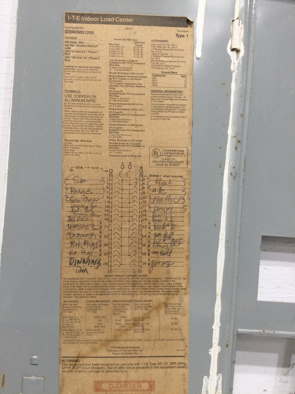 ITE G3040MB1200 200 Amp 30 Space 120/240V Panel Door 37 1/8" x 15 1/2"