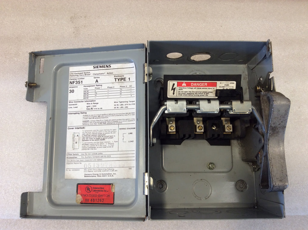 Siemens NF351 3 Phase 30A 600VAC Heavy Duty Enclosed Safety Switch Type 1 Enclosure
