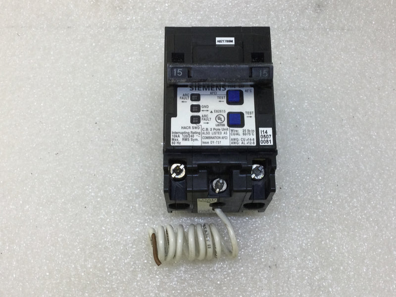 Siemens Q215AFC 15 Amp 2 Pole Type QAF Combination AFCI Circuit Breaker
