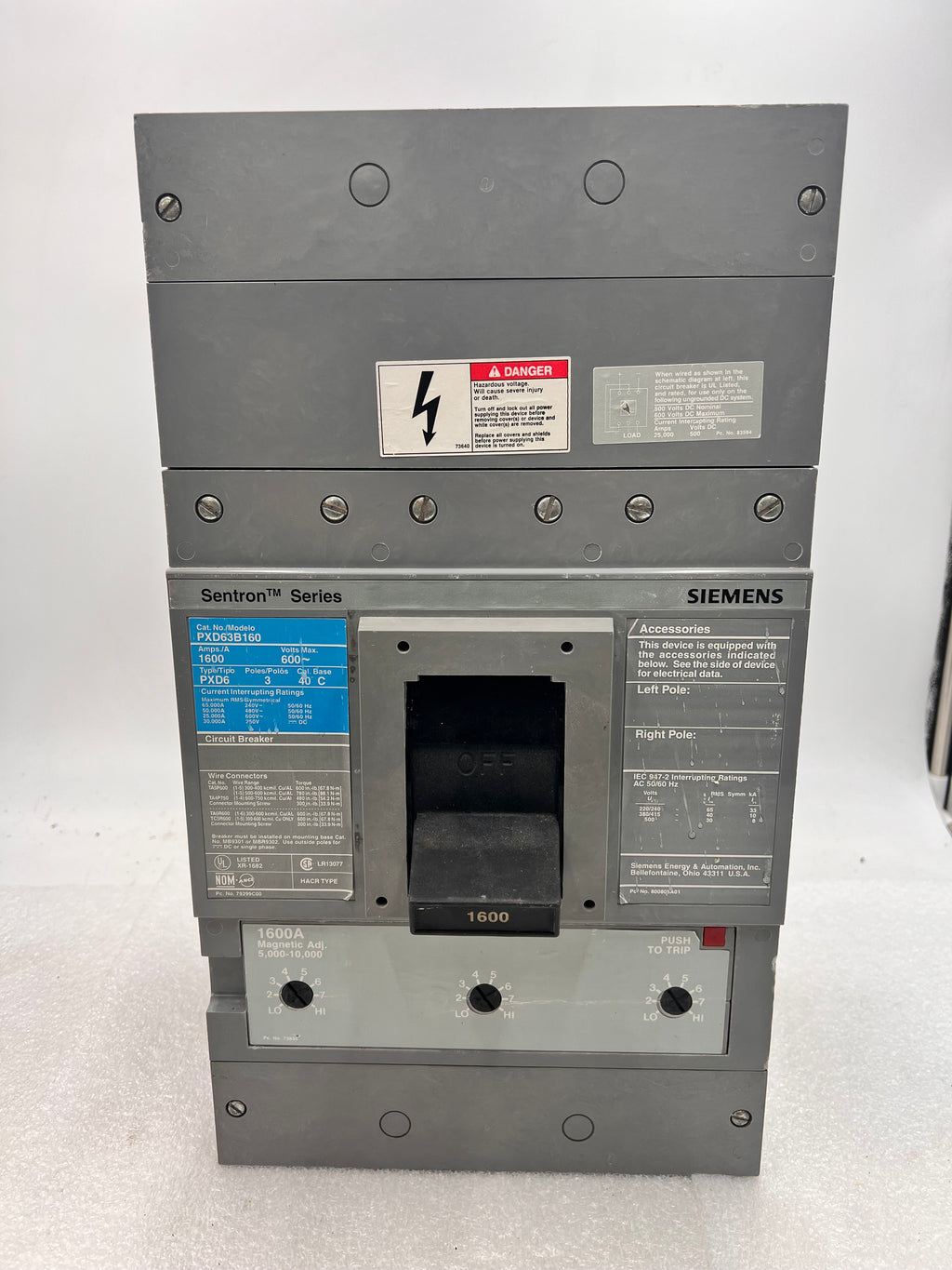 Siemens Sentron PXD63B160 1600Amp 600v 3 Poles Type PXD6 HACR Type Frame