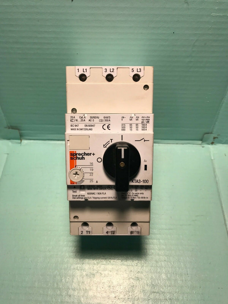 SPRECHER+SCHUH KTA3-100-25A CIRCUIT BREAKER KTA3100 ELECTRIC MOTOR CONTROL