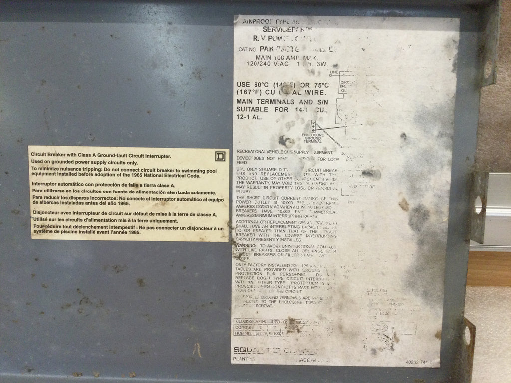 Square D 100 Amp 120/240V 1 Phase 3 Wire Type 3R Panel Cover 16.5" x 7 3/4"