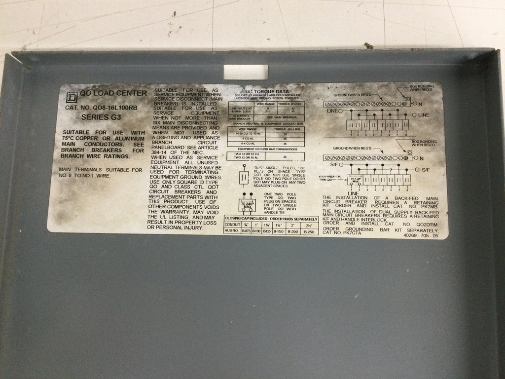 Square D QO8-16L100RB 100 Amp 8 Space 120/240V Cover Only 12 1/2" x 9 1/8"