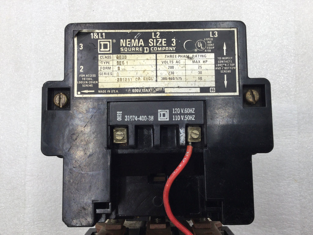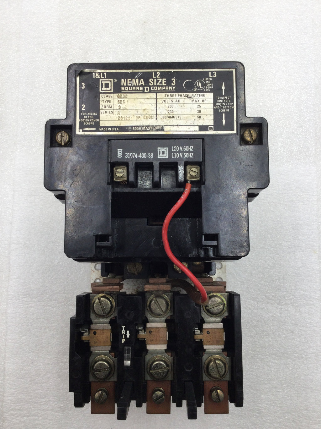 Square D 8536SEG1 3 Pole 200-575 VAC 25-50 HP Motor Starter with 120 VAC Coil