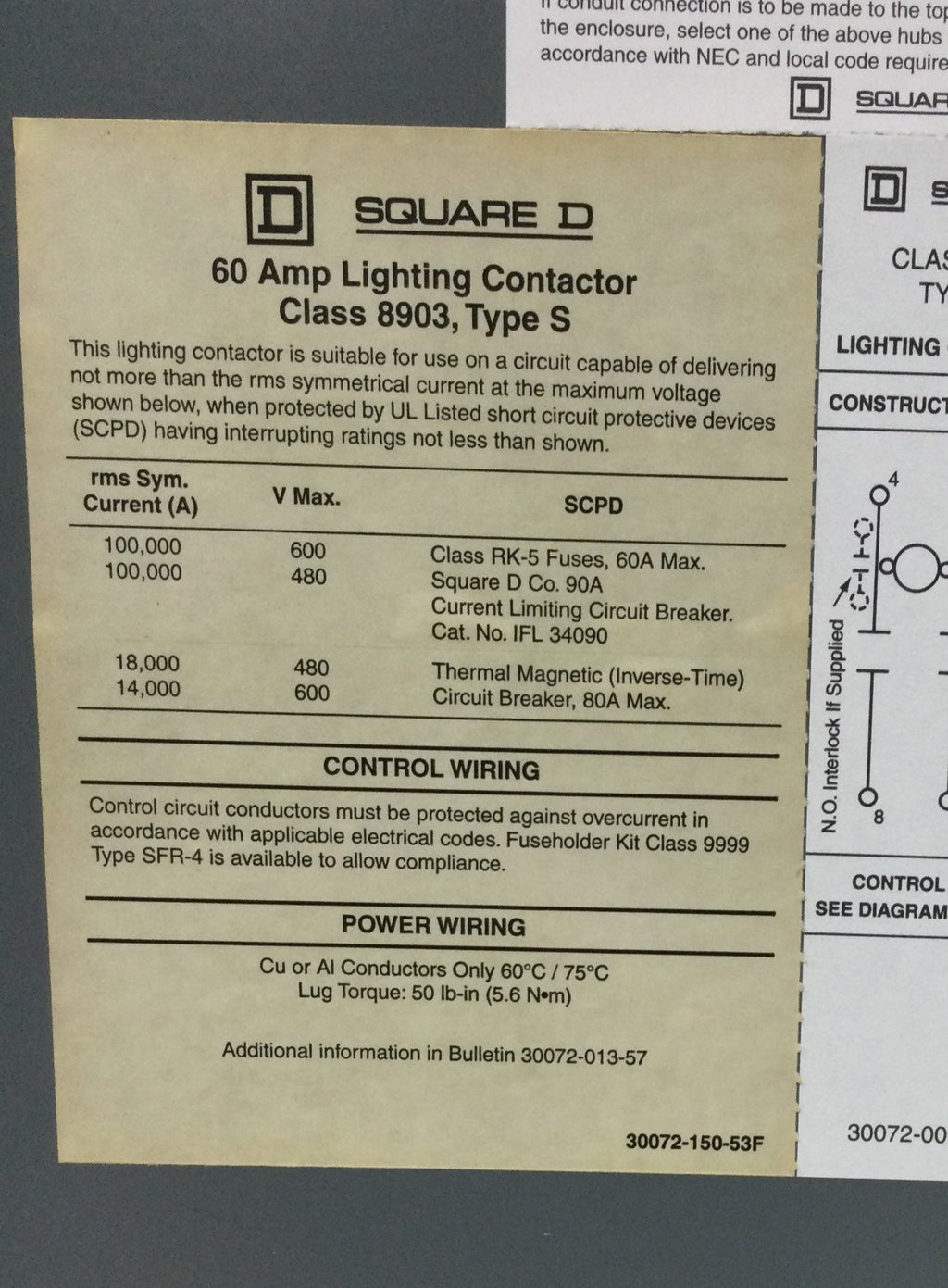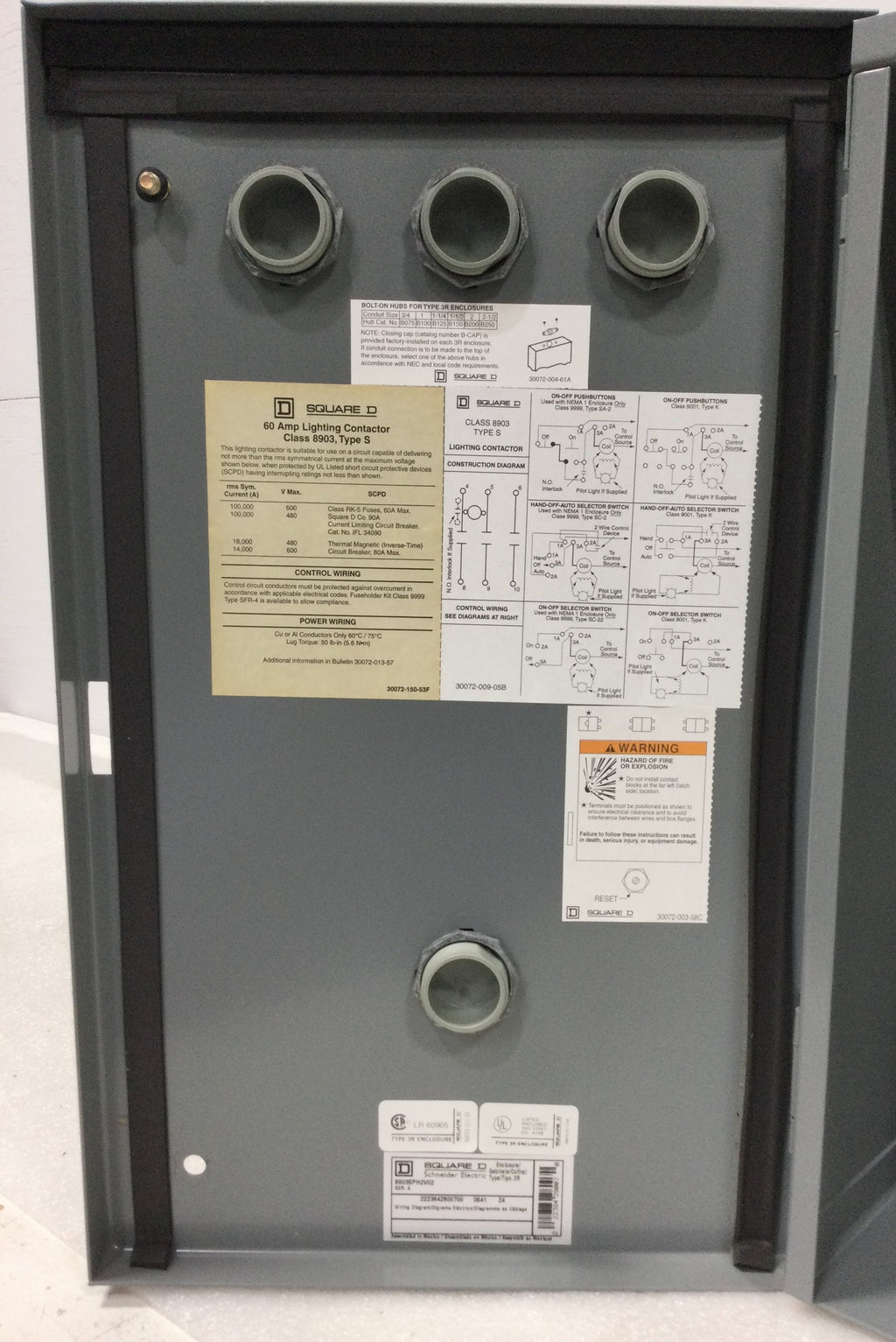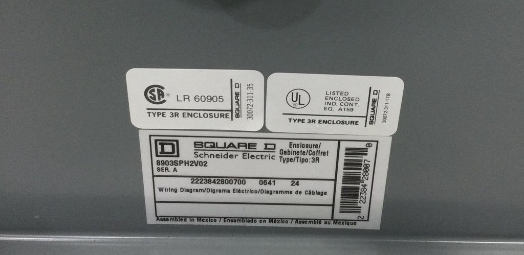 Square D 8903SPH2V02 Nema 3R Outdoor Lighting Contactor 60 Amp 3 Phase 277-600 VAC 120 VAC Coil