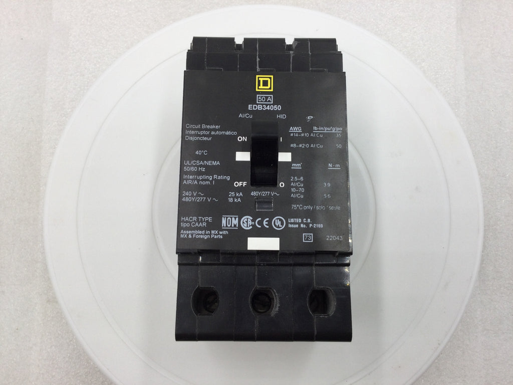 Square D EDB34050 50 Amp 3 Pole 480V Bolt-On Circuit Breaker