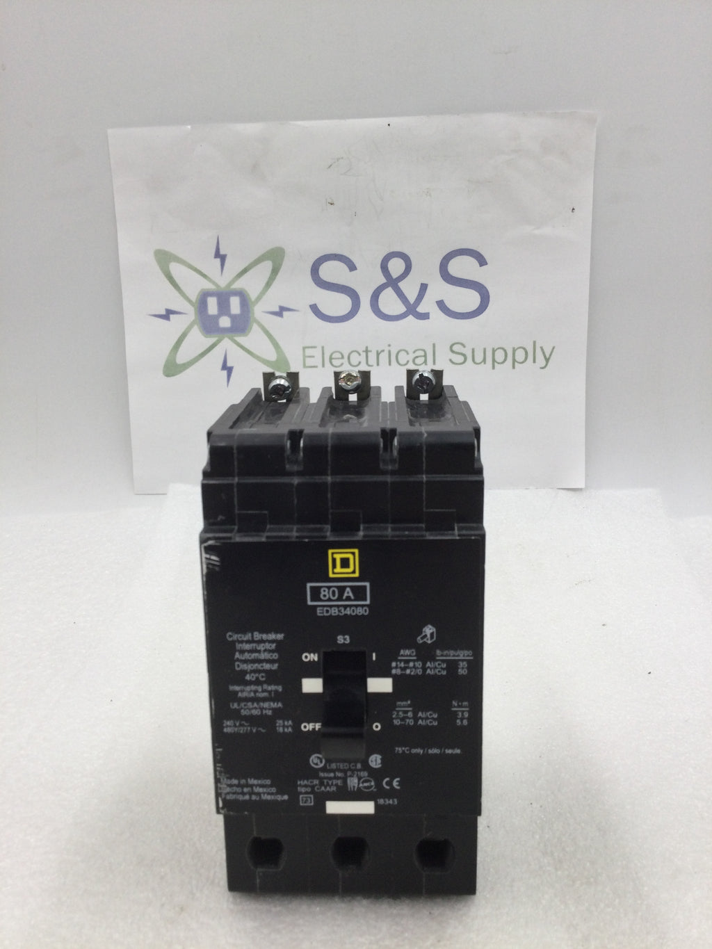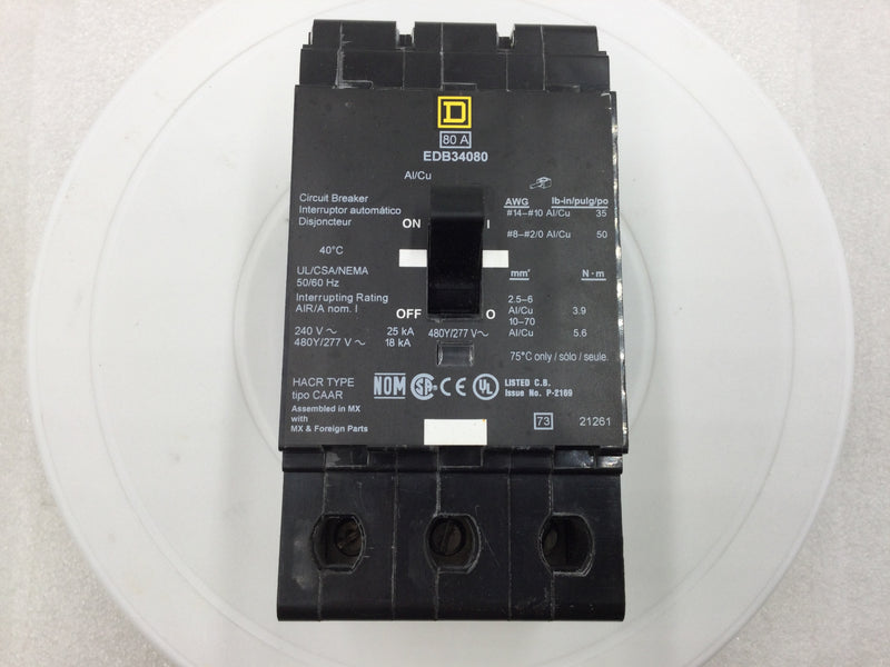 Square D EDB34080 80 Amp 480y/277vac 3 Pole Bolt On Type EDB Circuit Breaker