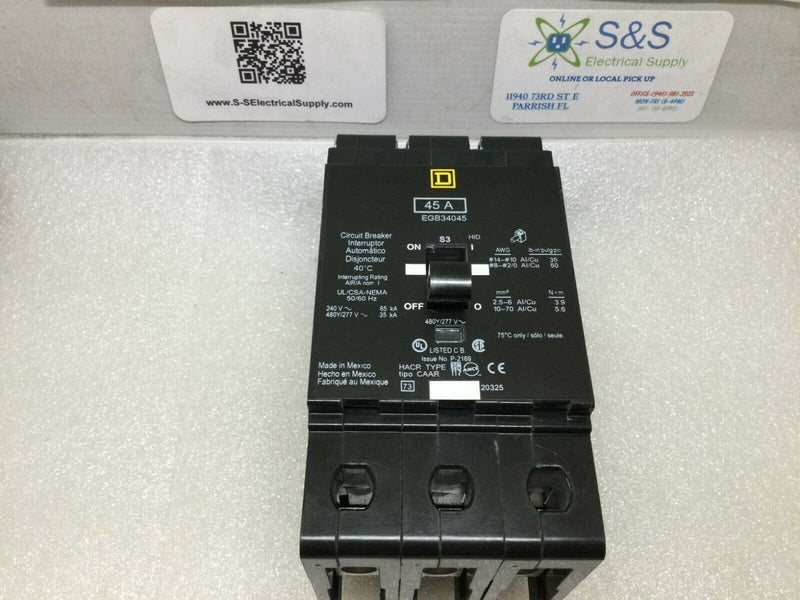 Square D Egb34045 3 Pole 45 Amp 277/480v Circuit Breaker