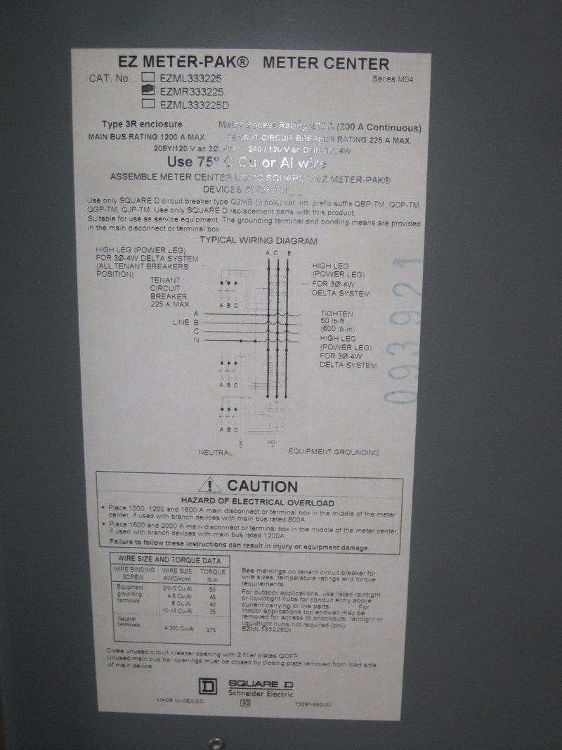 Square D EZ Meter-Pak EZMR333225, 3 PHASE  120/208 Volt