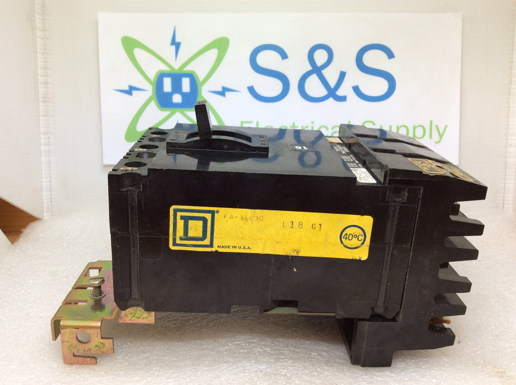 The Square D FA36030 is a 30 Amp, 3-pole circuit breaker rated for up to 600V. Designed for reliable protection in commercial and industrial electrical systems, its robust construction ensures consistent performance. The black face provides clear visibility for easy identification and operation in complex panels.