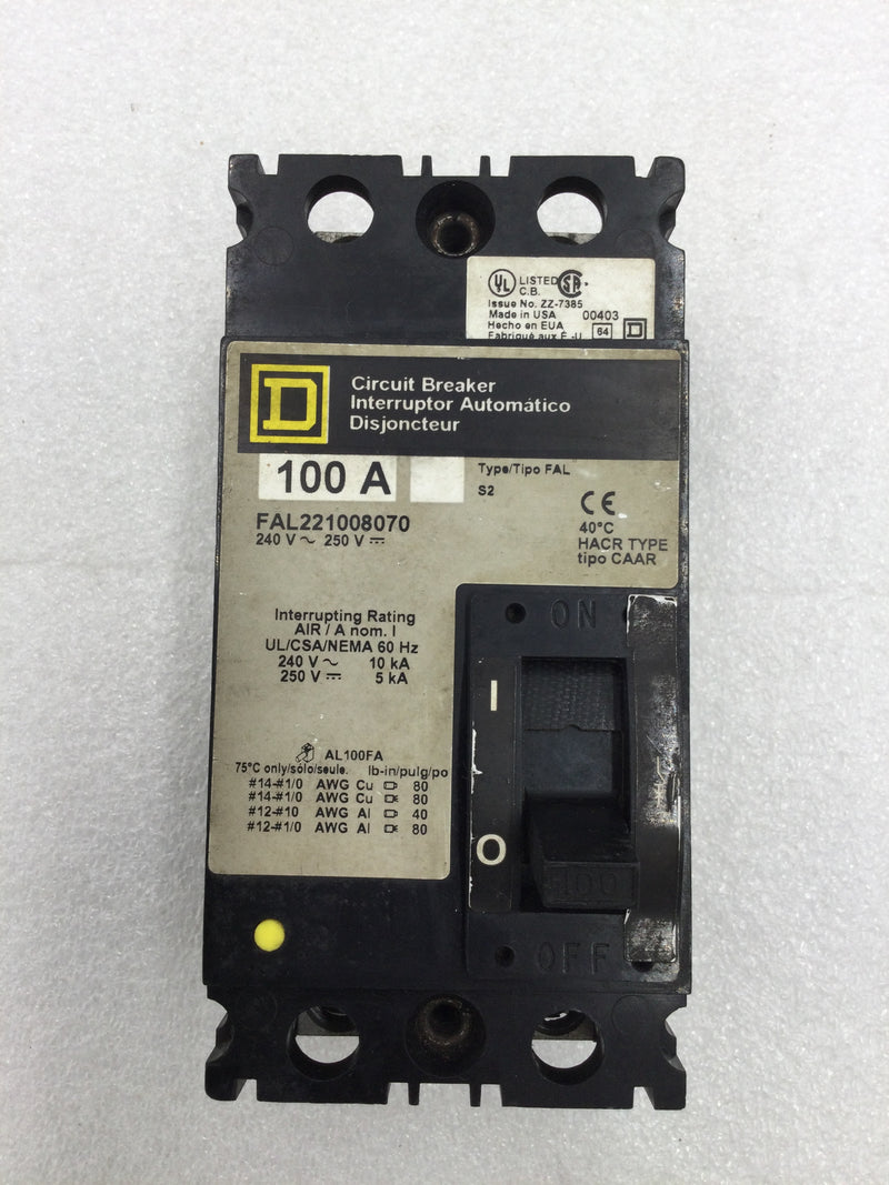 Square D FAL221008070 100 Amp 2 Pole 240V Circuit Breaker