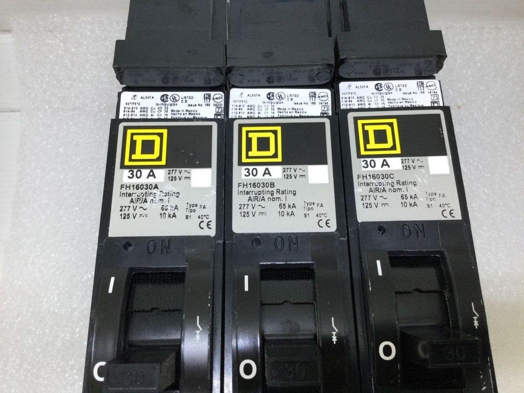 Square D FH16030A,B,C Single Pole 30 Amp 277VAC 65kAIC Type FH I-Line Circuit Breaker