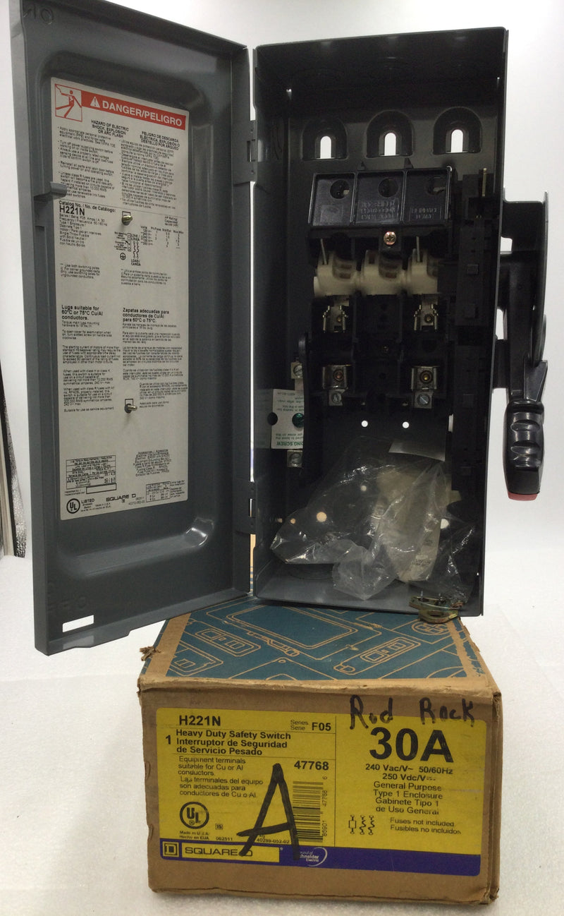This Square D Heavy Duty H221N 30A 240VAC Nema1 Fusible Safety Switch provides reliable, heavy-duty protection for your electrical system. With a 30A capacity and 240VAC rating, this switch offers powerful performance and safety features. Protect your equipment and ensure safe operation with this high-quality safety switch.