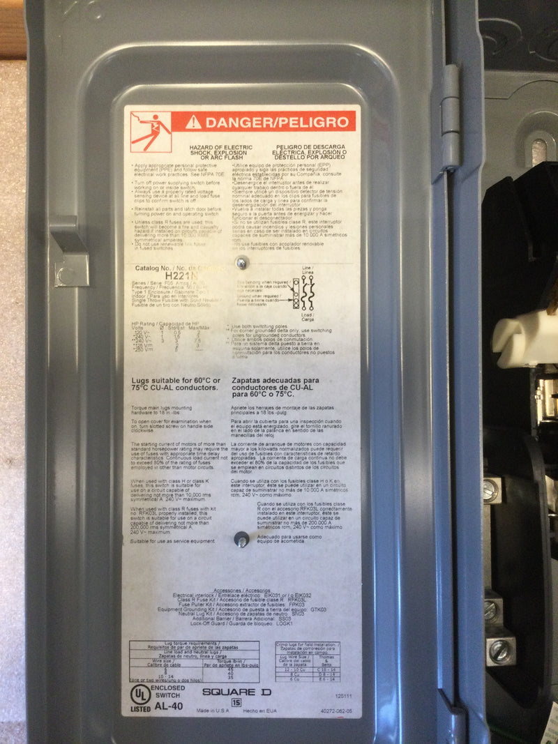 Square D H221N 30 Amp 2 Pole 120/240V Fusible Heavy Duty Safety Switch