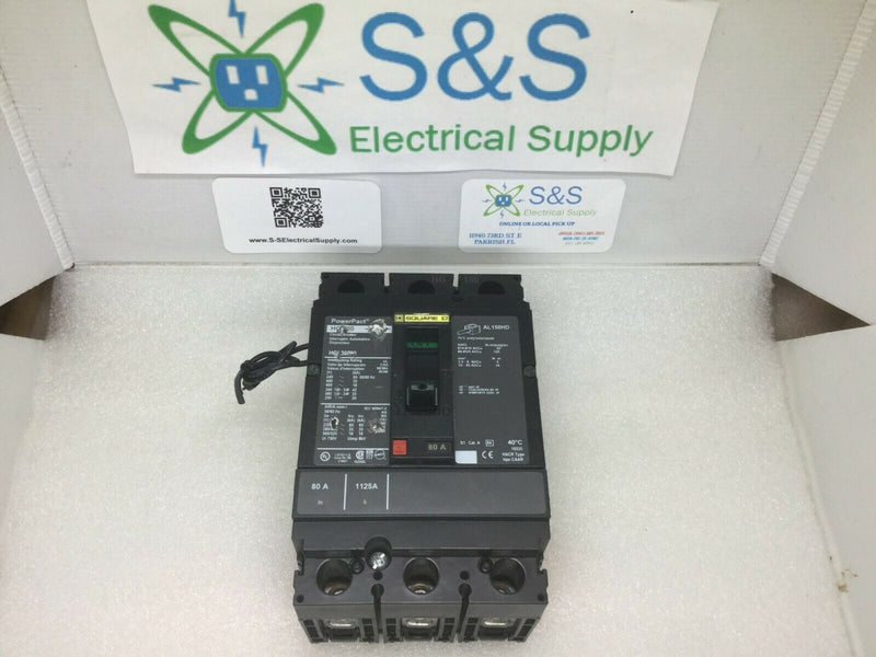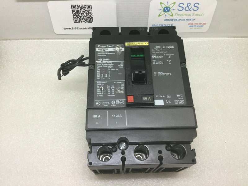 Square D Hgl36080so Circuit Breaker 3 Pole 80a 600vac/250vdc With 24v Shunt Trip