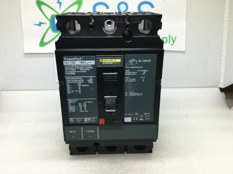 Square D HJF36090 90 Amp 3 Pole 600v/480v HJ150 Circuit Breaker