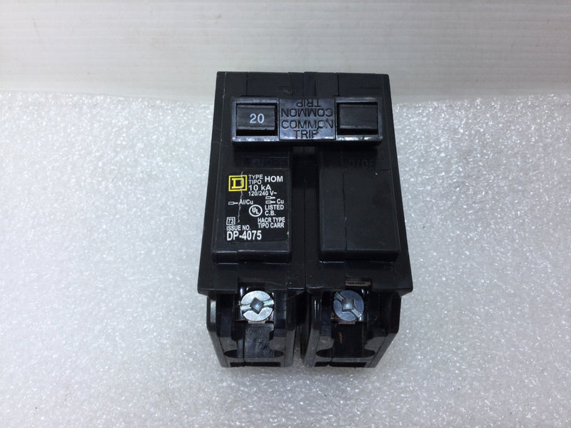 Square D HOM220 20 Amp 2 Pole 120/240V Circuit Breaker - Yellow Face