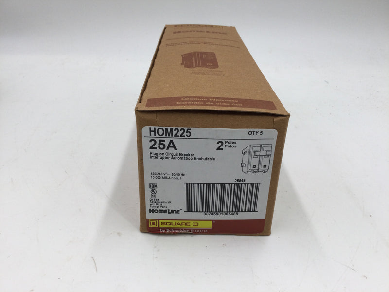 Square D HOM225 25 Amp 2 Pole 120/240V Circuit Breaker - Yellow Face